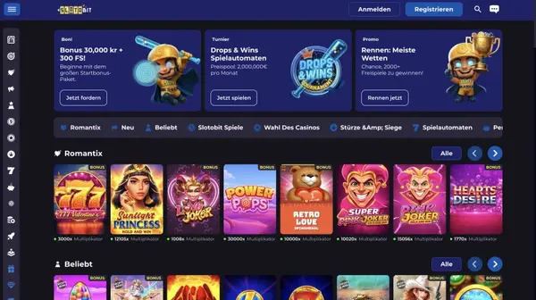 Slotobit Casino bietet mehr als 11.000 Spiele mit einer Mischung aus klassischen und modernen Mechaniken. Anbieter sind unter anderem NetEnt, Novomatic, Merkur Gaming, Pragmatic Play, Yggdrasil Gaming, Thunderkick, Red Tiger Gaming, Big Time Gaming, Betsoft Gaming und Playson. Wenn Sie Abwechslung mögen, können Sie von Walzen zu Live-Tischen wechseln, ohne das gleiche Wallet zu verlassen.